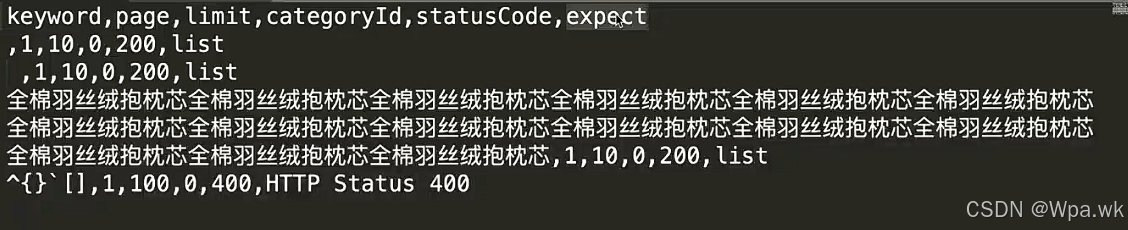CSV格式:.csv文件首行是变量的key-也就是输入的参数是什么;下面每一行都是一条测试数据;