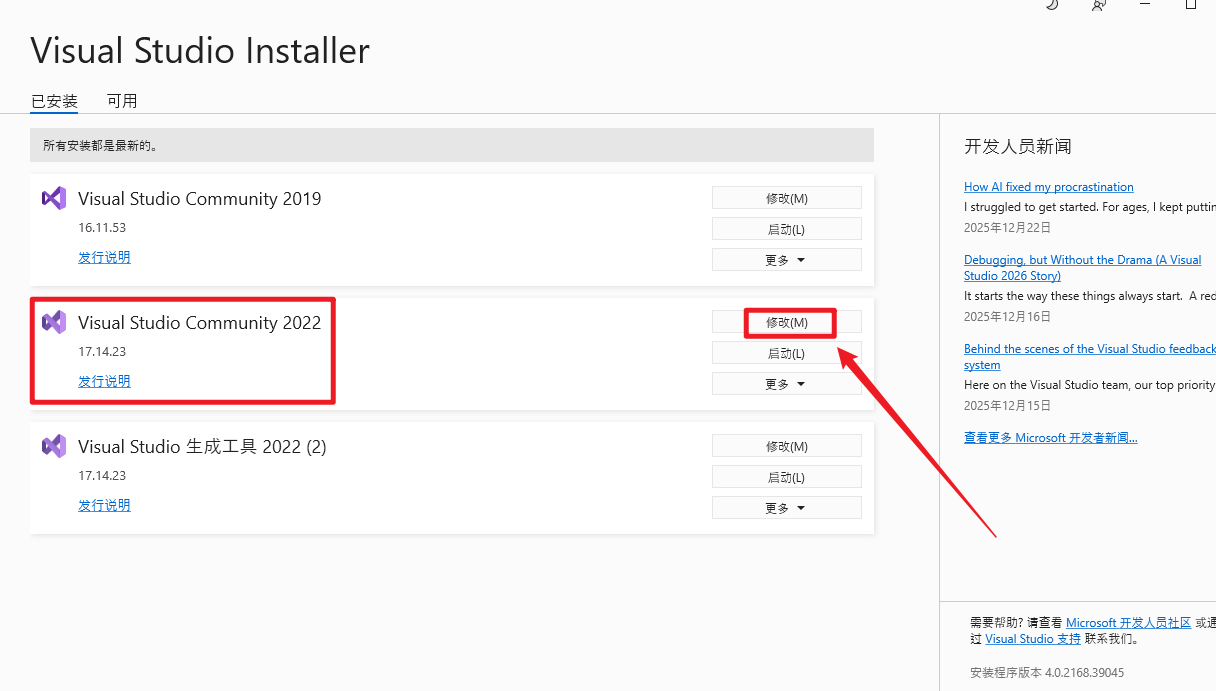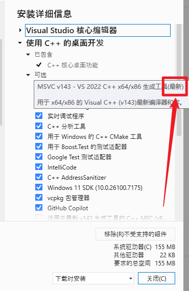 首先在右侧查看当前的MSVC是什么版本,如图我的显示的是【最新】,并没有显示版本号