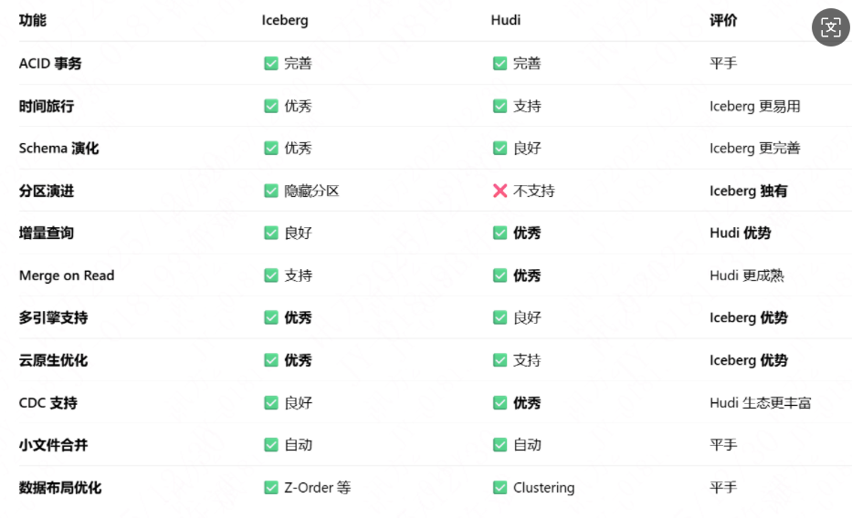 最终结论:Iceberg 正在成为更主流的、通用性更强的数据湖表格式标准,但 Hudi 在实时流式处理和 CDC 场景仍有其独特优势。 对于大多数企业,从未来扩展性、生态完整性和社区趋势来看,Iceberg 是更安全的选择。