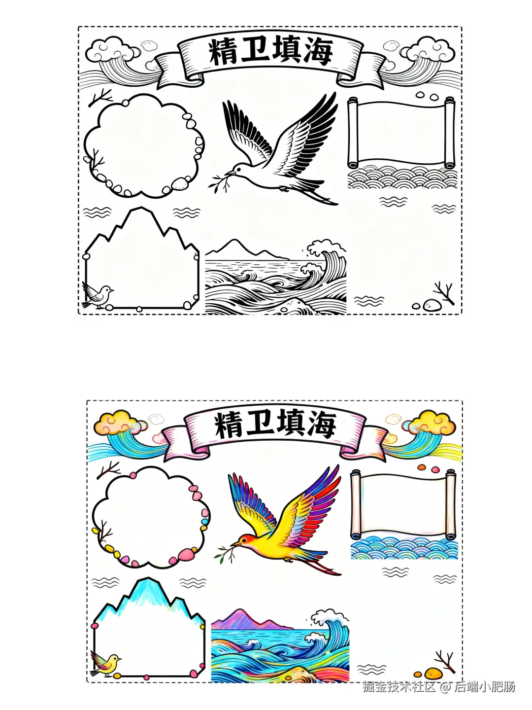 画板: 画板节点的作用是对图片进行拼接排版,在下图中排列了儿童画板线稿和由即梦4编辑上色后的儿童画报图。
