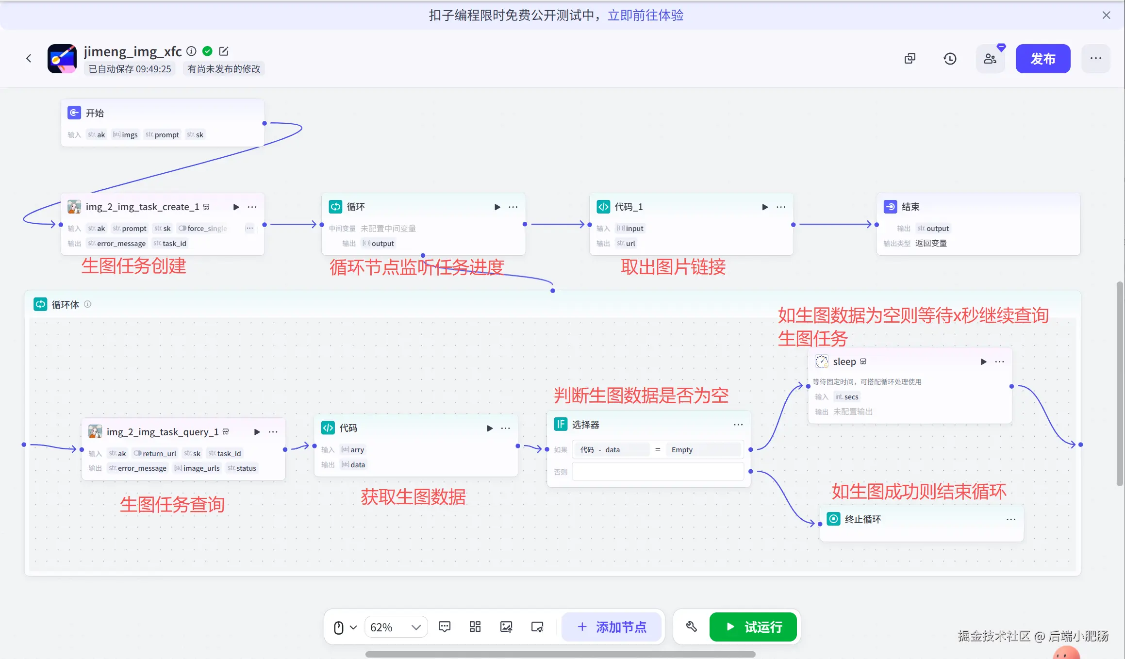 基于循环节点监听生图任务;