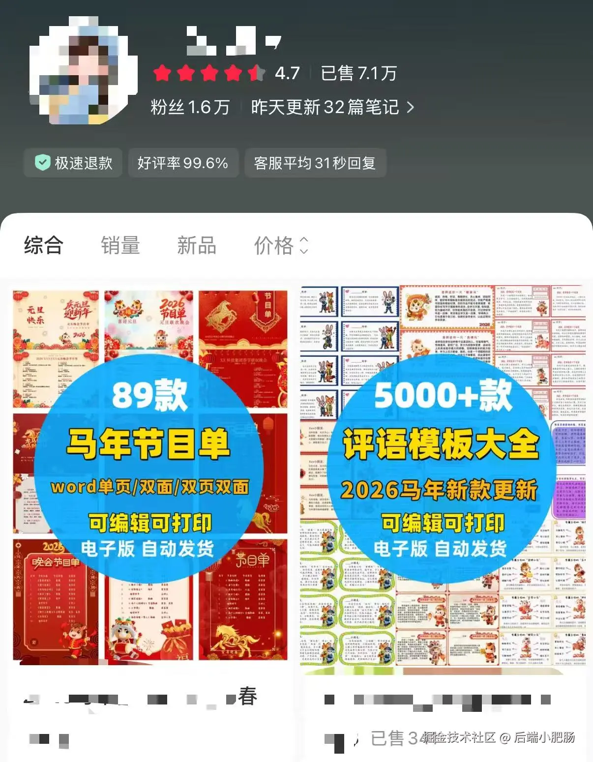 随便点开一个博主的橱窗,单价虽然不高,但显示已售7.1万! 这是什么概念?虚拟资料,0物流,0库存,一次生产,无限复利,这简直是教科书级别的"睡后收入"。