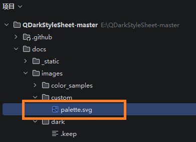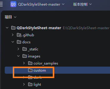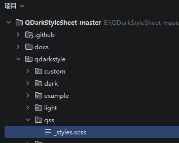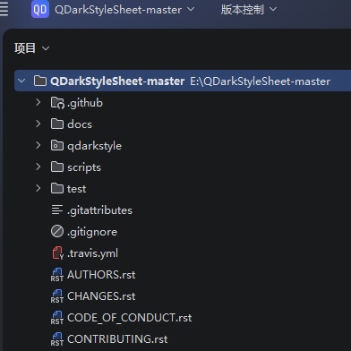 所有的操作均在下载到本地的QDarkStyleSheet-master项目下进行: