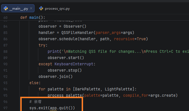 8. QDarkStyleSheet-master/根目录下创建process_qrc.py: