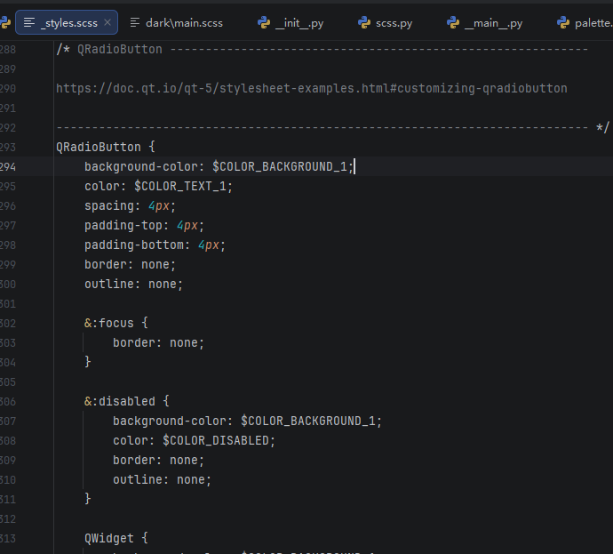 打开QDarkStyleSheet-master/qdarkstyle/qss/_styles.scss