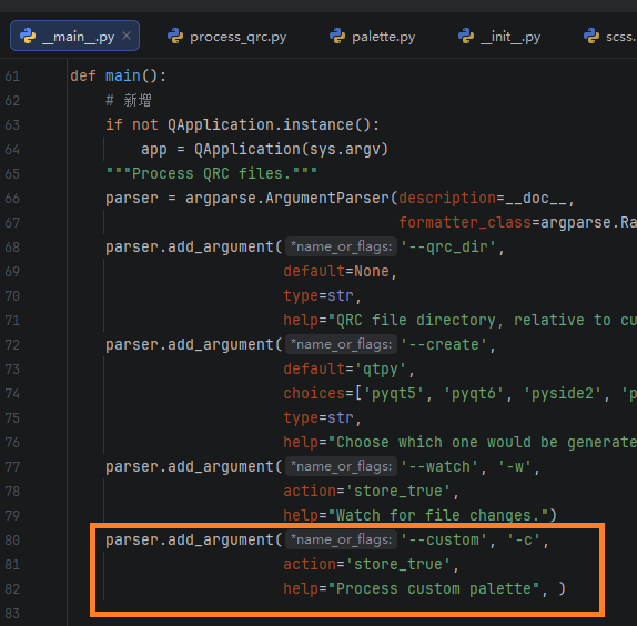运行process_qrc.py,在QDarkStyleSheet-masterqdarkstyle/custom下会生成两个文件:
