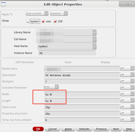 在去将 schematic 中的 器件 q 一下 , 将尺寸 填写进去,
