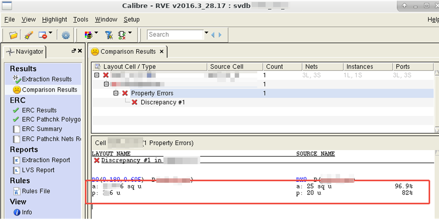 这是面积问题 说明SCHEMATIC中的尺寸与LAYOUT 中的 尺寸并不一致,这时候 需要问一下 负责人 尺寸大小应该以什么为标准,这里按照版图中的面积大小 为标准,