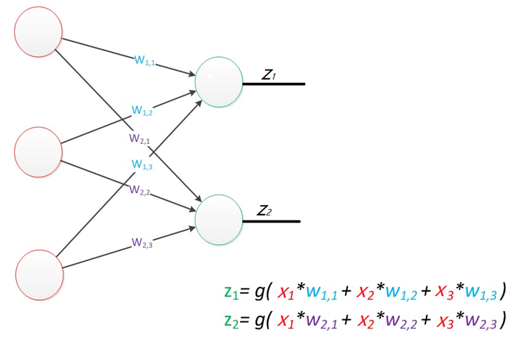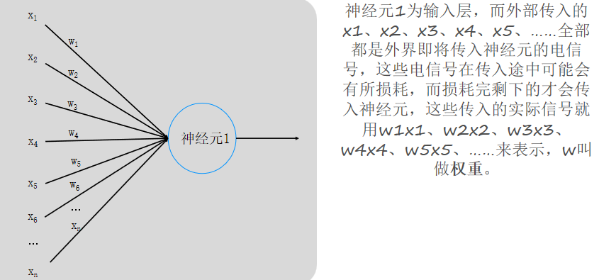 - 结构图里的关键不是圆圈(代表"神经元"),而是连接线(代表"神经元"之间的连接)。每个连接线对应一个不同的权重(其值称为权值),这是需要训练得到的。
