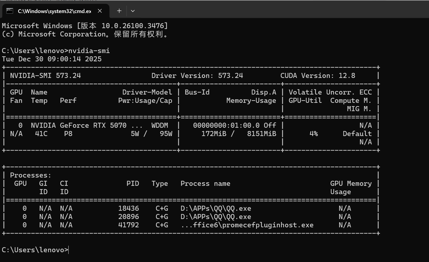 win+r输入cmd,打开命令提示符,输入命令nvidia-smi,输出cuda version就是电脑所支持的最高版本号,我这里是12.8