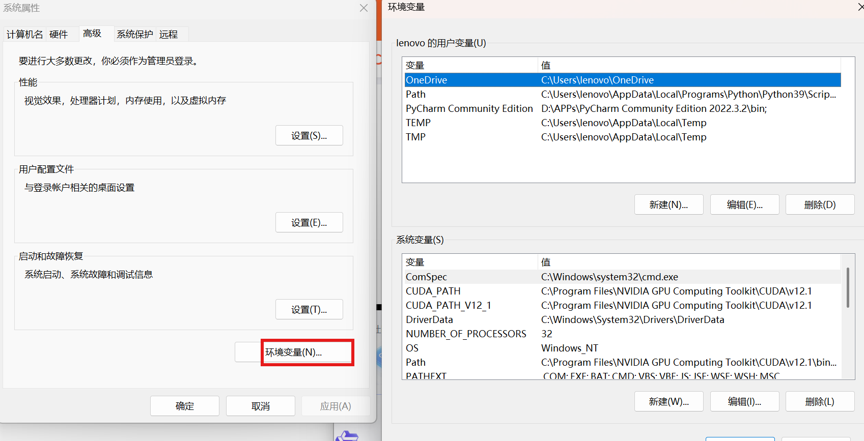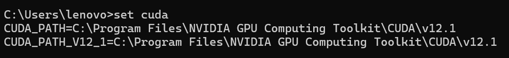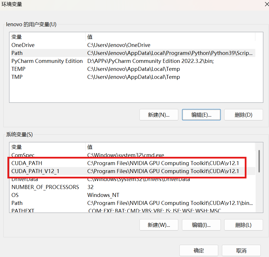 我们检查环境变量的目的就是确保CUDA能被系统找到,确保CUDA_PATH和CUDA_PATH_V12_1在环境变量中