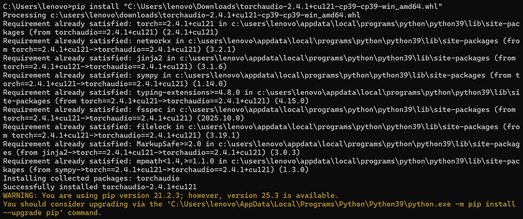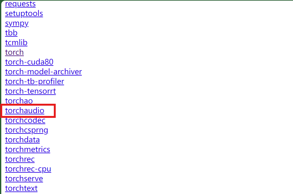 找到对应的,不能随便下载,虽然这里不像torchaudio和torch有一样的版本号,但是也是对应的,这个可以询问大模型对应的版本进行下载