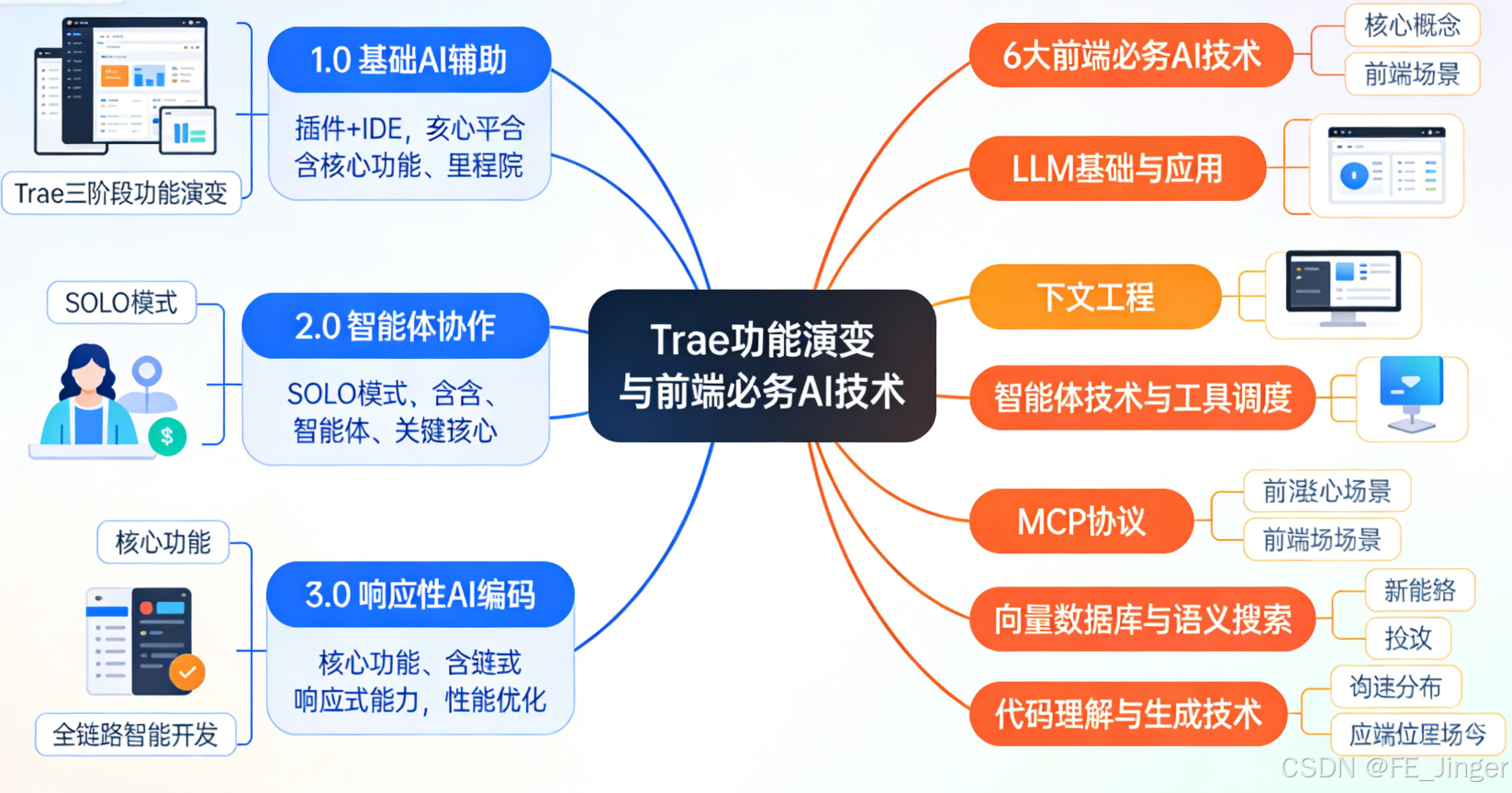 Trae作为字节跳动推出的AI原生IDE,其功能演进遵循清晰的三阶段路径,从"AI插件"逐步升级为"自主智能体驱动的开发闭环"。