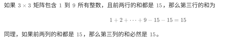 - 前两行的和都是 15。