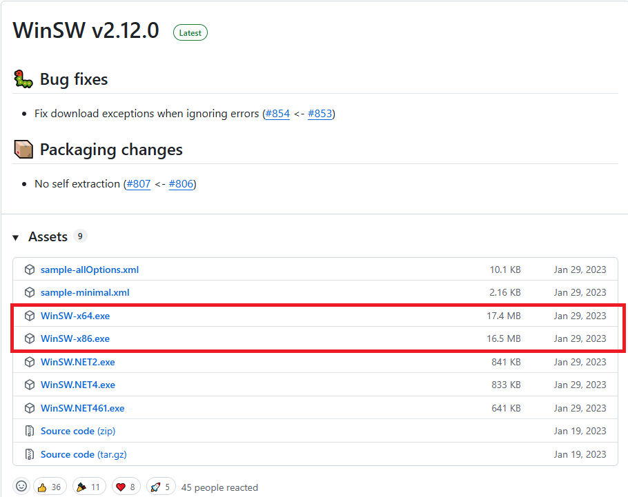 2、从winsw网站下载WinSw,根据需要选择x64或者x86版本