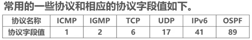 协议:标识数据部分对应的上层协议,比如:6对应 TCP,17对应 UDP,1对应 ICMP。