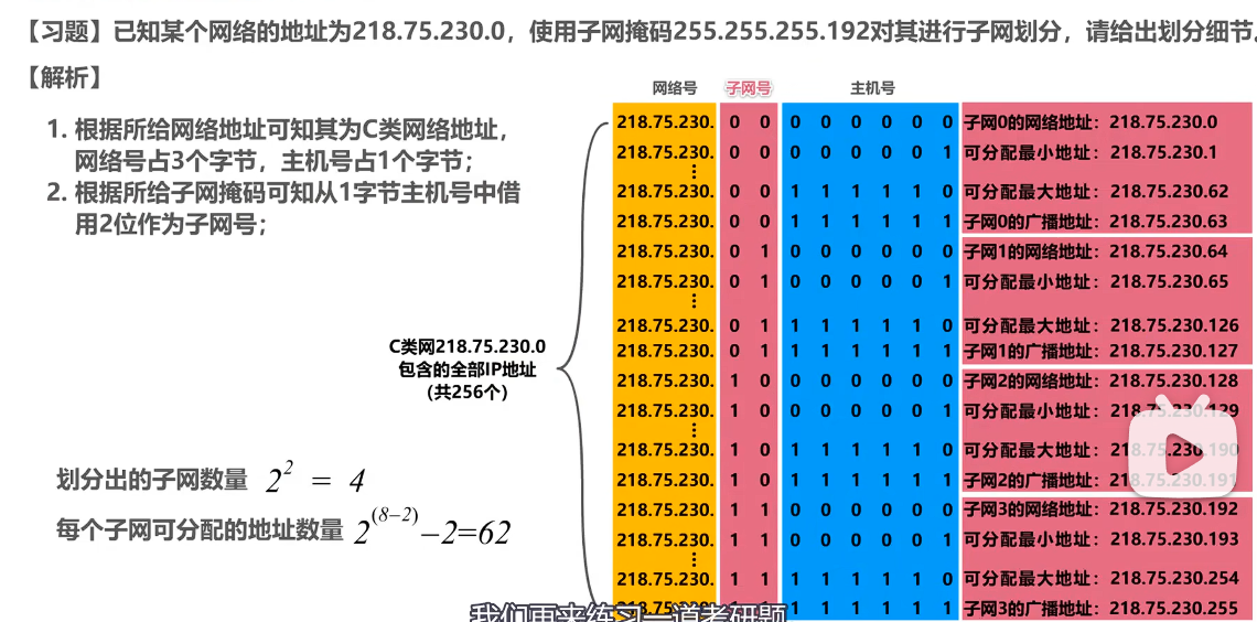 给定一个分类的ip地址和其相对应的子网掩码,就知道子网换分的细节: