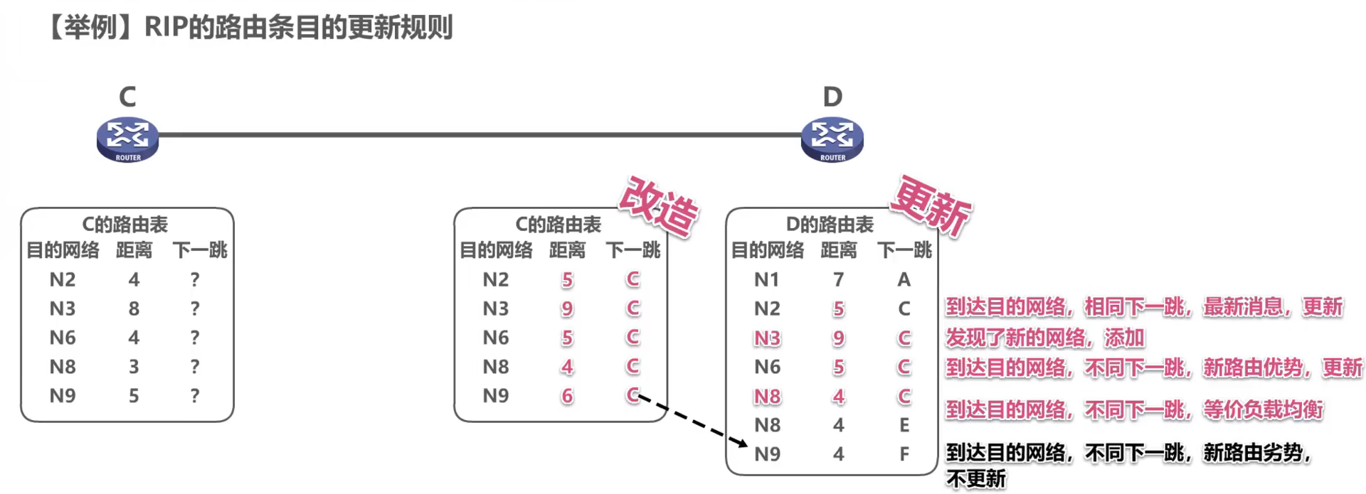 RIP的路由条目的更新规则发现了新的网络,添加