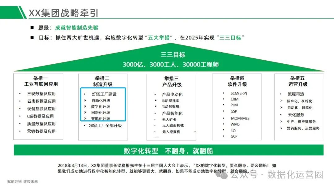 这份解决方案PPT详细介绍了某制造集团的灯塔工厂解决方案,涵盖了灯塔工厂的建设背景、规划、实践案例以及方法总结。展示了集团如何通过数字化转型应对行业挑战,实现智能制造,以及如何通过工业互联网、自动化、智能化等技术提升生产效率和质量,降低成本和能耗。