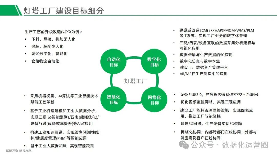 还介绍了集团在建设灯塔工厂过程中的关键特征、设计原则、目标成效,以及具体的技术实施细节,包括自动化、网络化、数字化和智能化的建设实践。最终,这些努力旨在提升集团的市场竞争力,实现制造先进性,传承顺畅,并提高企业的整体估值。