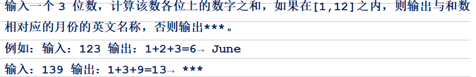 根据题目要求我们要先计算出,三位数各个位置上的数之和,然后根据和来输出对应的英文名称。
