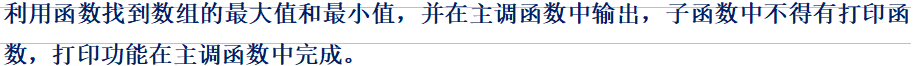 2.根据分析,定义函数无需返回值,所以是无参函数,在这个函数里找出数组的最大值和最小值,先假定都是数组的第一个数,然后不断的和数组其他数比较,确定最大值和最小值的值。