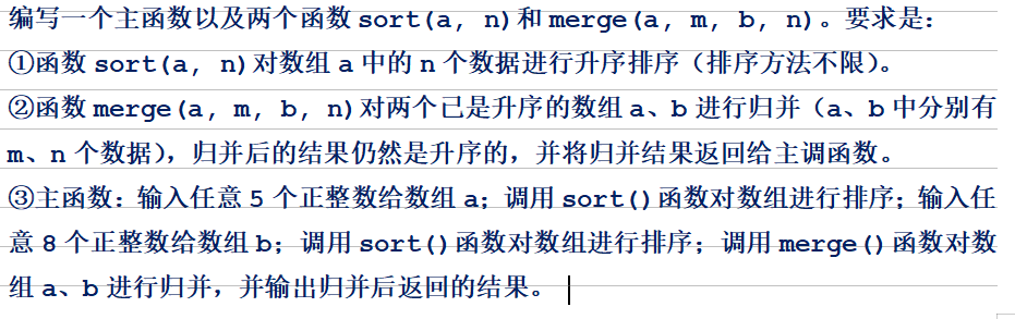 根据题目要求是先将两个数组都排序完后,然后合并排序。需要定义两个函数。
