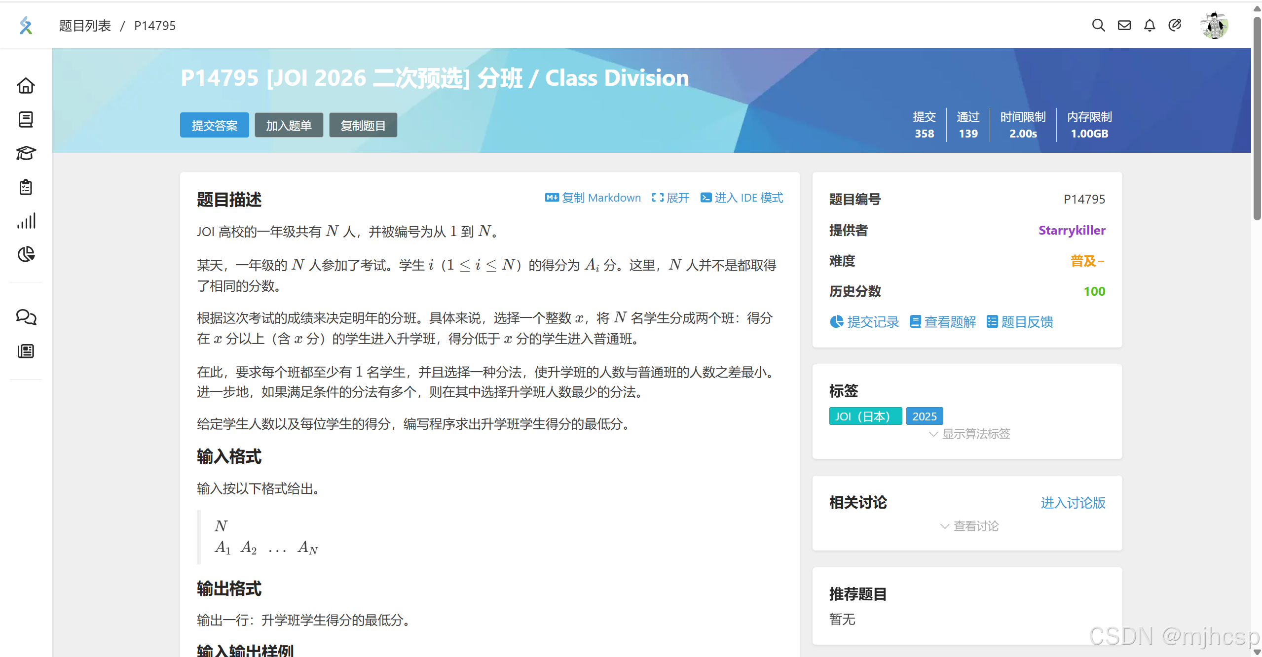 P14795 [JOI 2026 二次预选] 分班 / Class Division