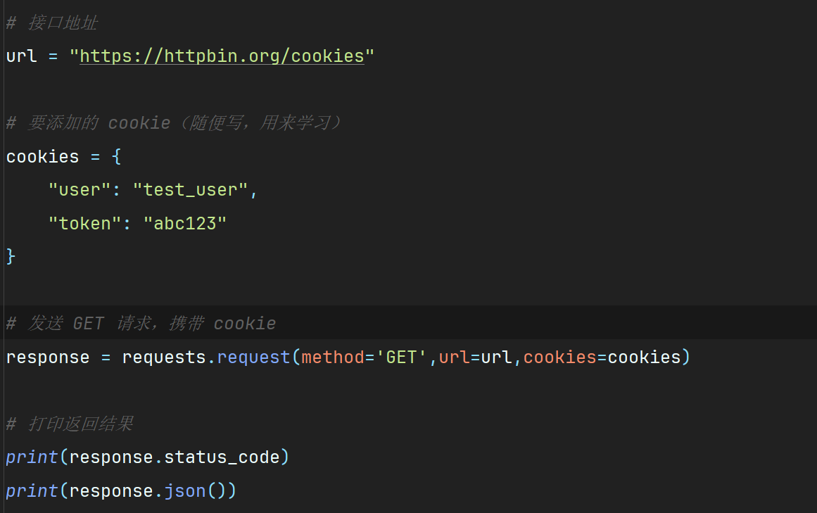 cookies:一个字典、列表或者 RequestsCookieJar 对象,包含要发送的 cookies