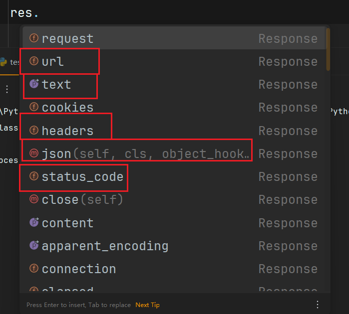 可以看到 headers,cookies,status_code等都有包含,这里的headers我们仔细想一想一定是响应头,因为我们通过requests.get方法发出get请求,我们期望得到网站或者接口的响应来获取想要的信息,所以这里的headers是响应头