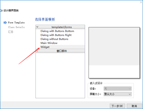 然后新建一个窗口,工程下创建新的Qt设计师界面类,如图 :