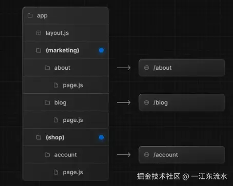 你会发现,最终的 URL 中省略了带括号的文件夹(上图中的(marketing)和(shop))。