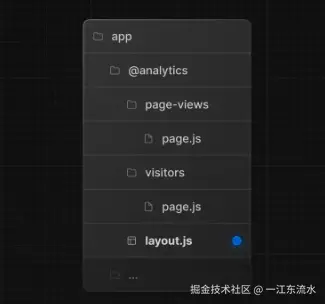 平行路由跟路由组一样,不会影响 URL,所以 /@analytics/page-views/page.js 对应的地址是 /page-views,/@analytics/visitors/page.js 对应的地址是 /visitors,你可以导航至这些路由:
