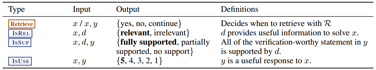 c)一个评价token ISSUP,评价下一个生成的段中的信息是否得到检索到的文章的支持;