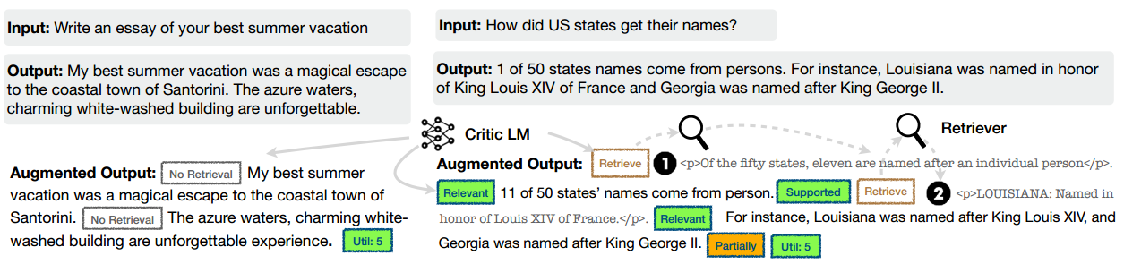 (3)它生成评论token来批评自己的输出,并在事实性和整体质量方面选择最佳输出。