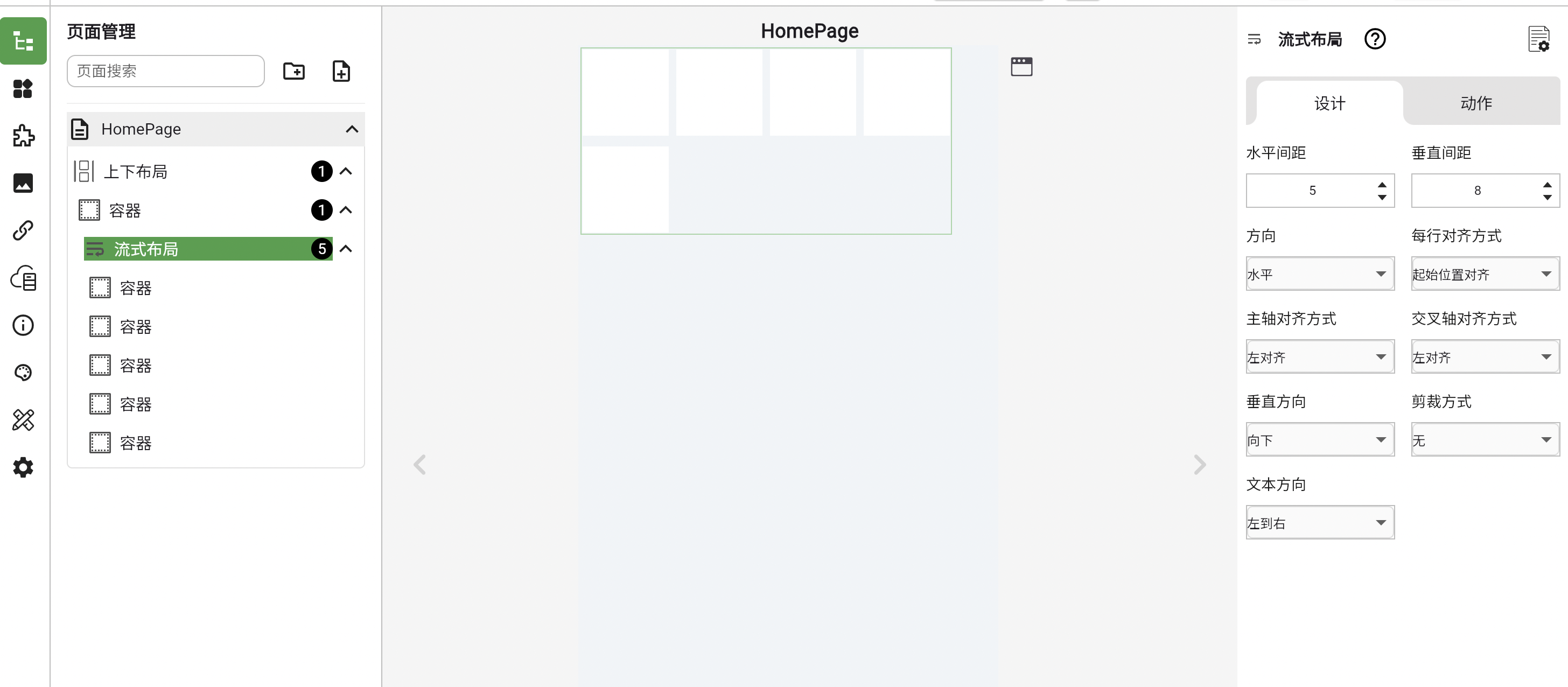 | 交叉轴对齐方式 | 控制交叉轴方向上所有子组件的对齐方式 | 左对齐 / 右对齐 / 居中对齐 / 两端对齐 / 分散对齐 / 平均对齐 |