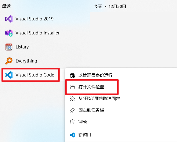 找到VSCode的快捷启动所在位置