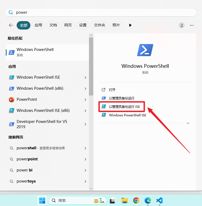 以管理员身份运行 PowerShell ISE