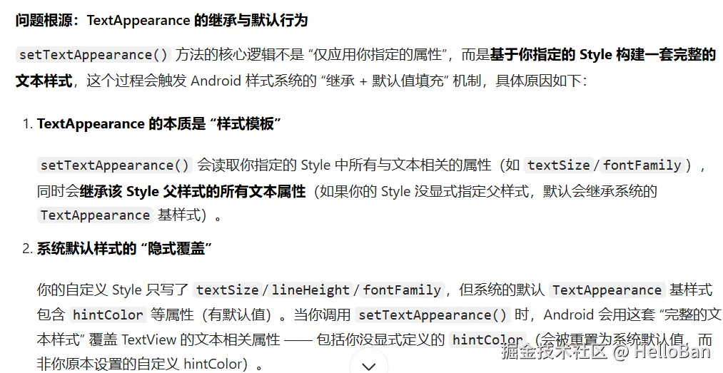 故可以看到,默认style带有textColorHint,解析之后将原本希望设置的覆盖掉了