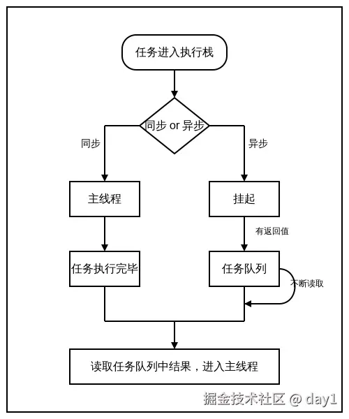 - 进入下一轮循环:返回第一步,准备从宏任务队列中取出下一个任务。