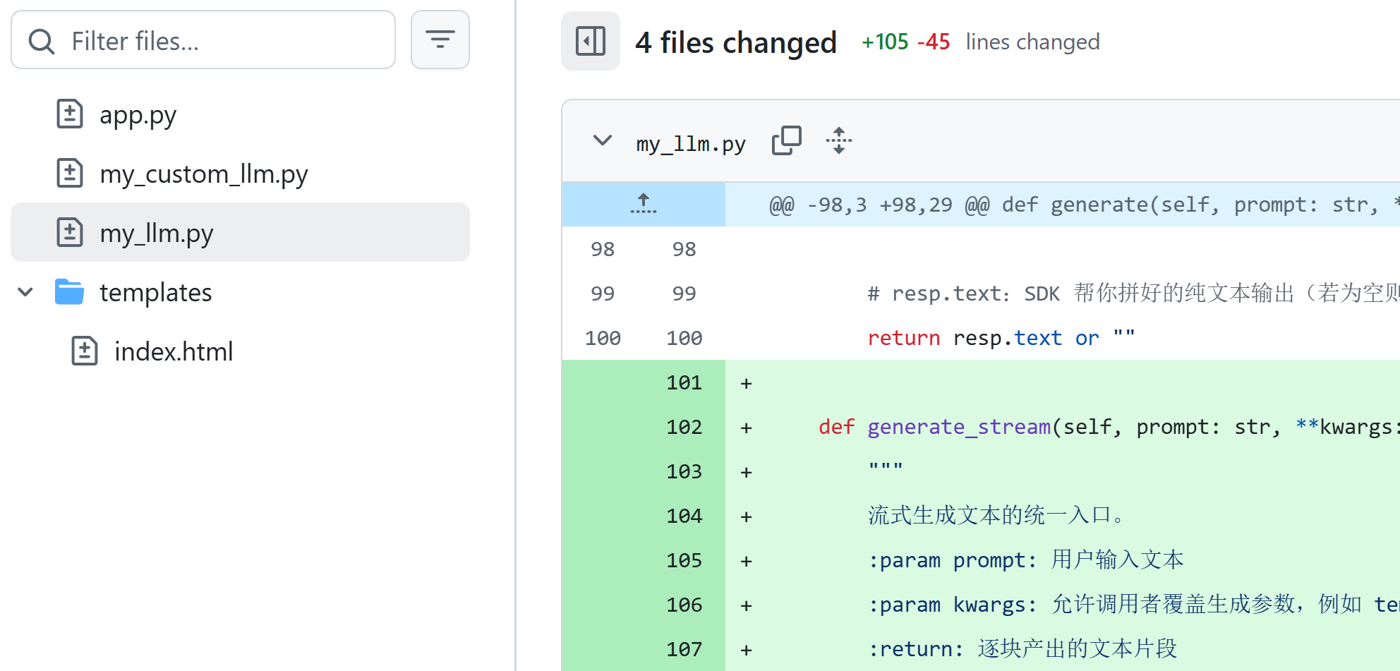 - [[附]: diff 涉及的 **3 个文件**(`app.py` / `my_custom_llm.py` / `my_llm.py`),分别拆解](#[附]: diff 涉及的 3 个文件(