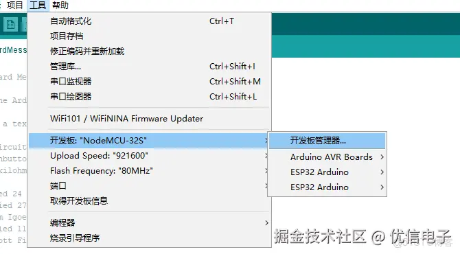 添加好之后记得点好然后确定不要直接点 × 关掉了,那样是不会保存的 保存好之后点击 工具 → 开发板 → 打开开发板管理器