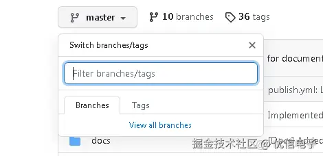 如果你像我下面这样没有一个列表一样的出现,那么就点击 View all branches 跳转过去再打开 ESP32-s3-support的分支 就好了