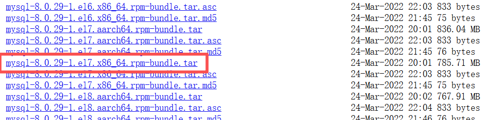 tar -xvf mysql-8.0.29-1.el7.x86_64.rpm-bundle.tar