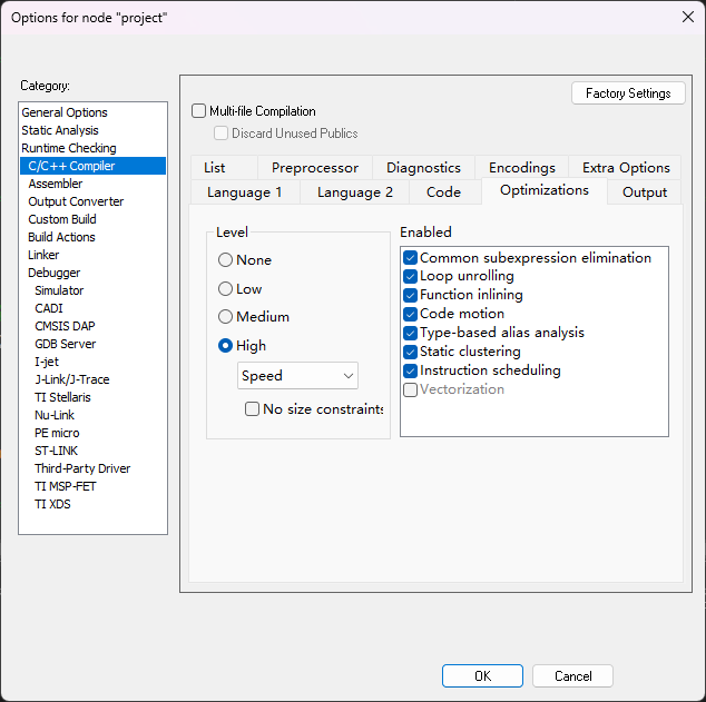 3、由于各个优化等级选项太多,不逐一测试了,每个编译器仅测试了一个选项/
