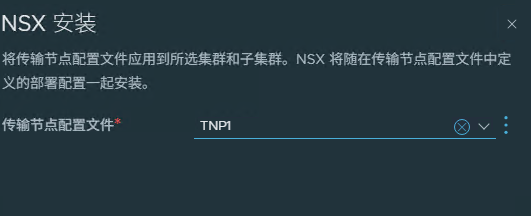 打开NSX 管理界面 > 系统 > Fabric > 主机 > 集群 > 勾选所需集群 > 配置NSX > 选择TNP文件