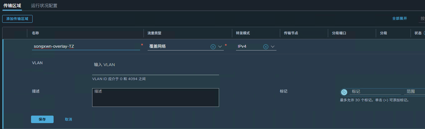 PS:Overlay(覆盖网络)传输区域可以理解一组建立VXLAN全互联的虚拟交换机,VLAN传输区域可以理解为分布式端口组。