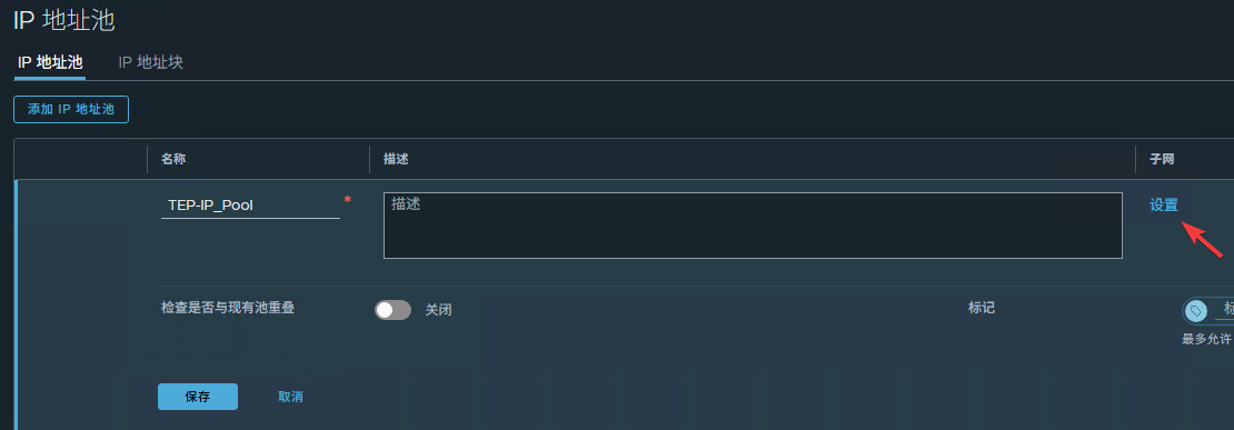 - 选择TEP分配使用IP池,然后选择已创建的IP池