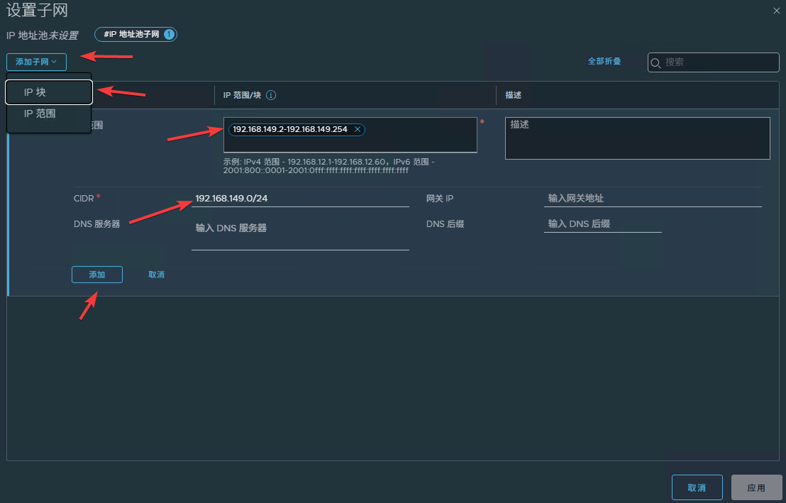 打开NSX 管理界面 > 网络 > IP管理-IP地址池 > 添加IP地址池