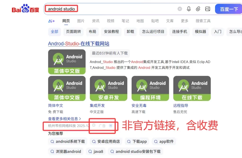 这里之所以提及下载链接,是因为有的初学者会被坑到百度的收费广告去,如下图